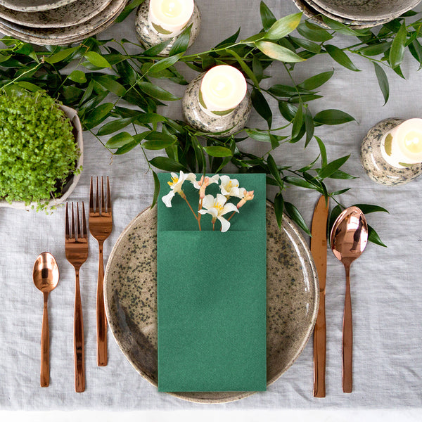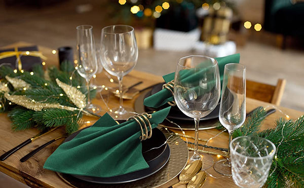- Nature's Elegance: Green napkins represent the lushness of evergreen foliage, making them perfect for a nature-inspired Christmas table. Coordinate with wooden or rustic tableware to enhance the natural and elegant ambiance. Add touches of gold or copper accents for a touch of sophistication.