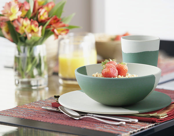 Eco-friendly green bamboo fiber dinnerware set