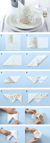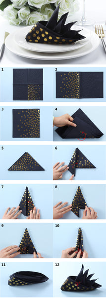 The type of napkin you use can ultimately determine the shape of the folded napkin. A loose, fragile napkin will lower the overall grade of your wedding. We recommend using pure cotton napkins or high-end high-grade dust-free paper napkins. You can fold simple or complex origami shapes according to your wedding needs. Here are some simple and elegant origami tutorials we recommend: