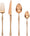 Brand MORGIANA Material Stainless Steel Color Rose Gold Style Matt PACKAGE INCLUDES 1 Dinner Knives, 1 Dinner Spoons, 1 Dinner Forks, 1 Tea Spoons Features: 【FUNCTIONAL FLATWARE SET】The stainless steel flatware set including 1 Dinner Knife + 1 Dinner Spoon...